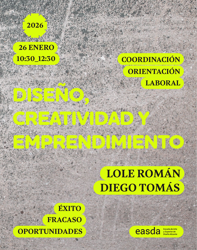 El lunes 26 de enero, celebraremos una charla abierta sobre emprendimiento dentro del ámbito del diseño, donde hablaremos del éxito, el fracaso y las oportunidades para impulsar proyectos creativos, con dos ponentes de referencia: