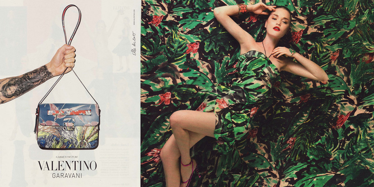 El Ornamento o universo del imprescindible complemento; sentir en la piel tu historia interna, proyección de ritmos vitales. La iconografía viaja a través del tiempo y el espacio, una greca atraviesa nuestro mediterráneo. molduras, lacerías, papel pintado en las paredes, baldosas hidráulicas, alfombras, cerámica. Interiorismo existencial. Una modelo se camufla con el estampado de su vestido en la floresta. El impulso gráfico inunda nuestra realidad e identidad con todo tipo de marcajes, patterns y repeticiones hasta vaciarlo de significado, tal como hizo Warhol con Marilyn (pero esa es otra historia).