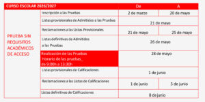 En el fichero adjunto se detalla el calendario de las pruebas de acceso a los Ciclos Formativos Curso 2026/2027. Descárgatelo aquí.